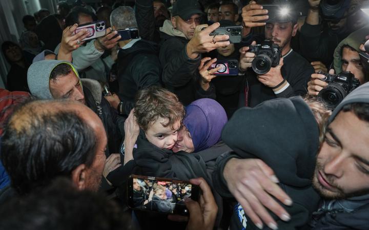 Ambulances queued for hours at the border before ferrying patients into Egypt, the state-run Al-Qahera News satellite television channel showed. Just before midnight, a bus arrived in Gaza carrying Palestinian returnees who had fled the fighting early in the war. As the vehicle entered the compound of a hospital in Khan Younis, a girl wearing barrettes and an older woman stood just inside the front door, waving to relatives anxious for their return.